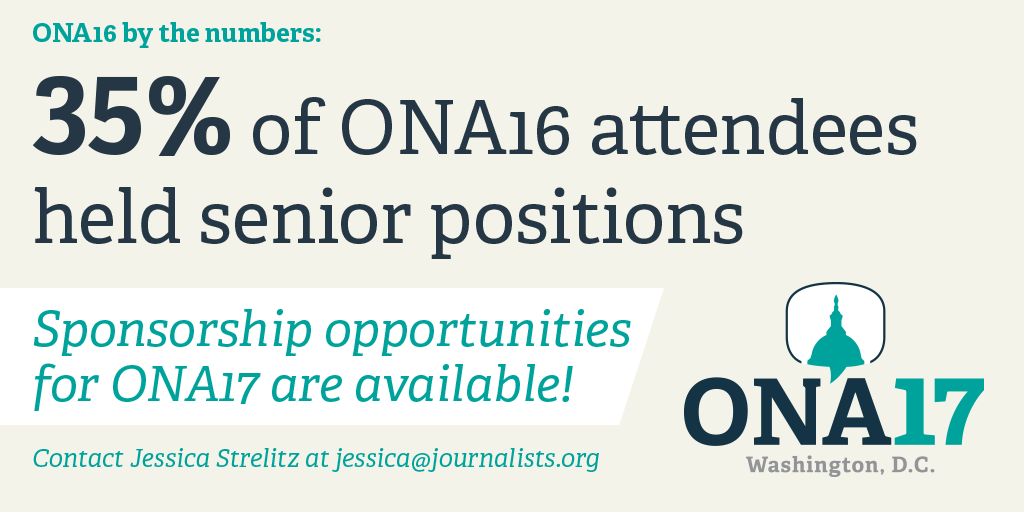 - ONA will promote posts to its networks, including Twitter, Facebook and via the ONA17 e-newsletter (global reach of 60,000+ digital journalists)
